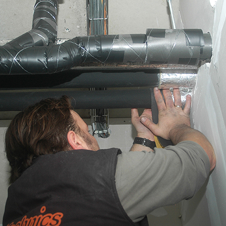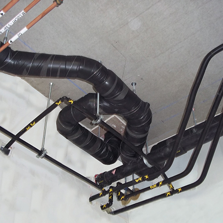 Hiervoor worden materialen met een massaveersysteem aangebracht op de leidingen