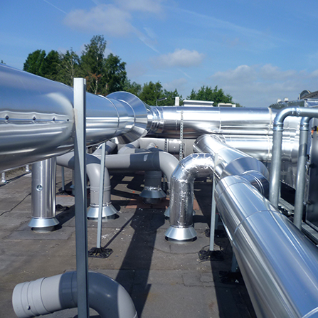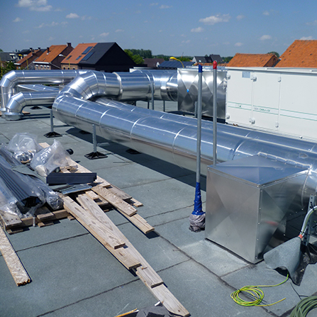 Luchtkanalen moeten thermisch of akoestisch geisoleerd worden. Indien buitengelegen dienen deze ook mechanisch beschermd te worden door ze te omkasten met een aluminiumplaat.